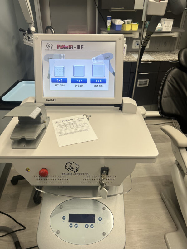 At Rohrer Aesthetics, we developed the PiXel8-RF Radio Microneedling System to combat signs of aging for patients with various skin types. After just one treatment, patients have reported their skin surface to be softer and smoother. Technicians can adjust the energy levels delivered into the tissue from 0.1mm to 4 mm to account for variants in patient skin types and desired results. We designed the PiXel8-RF for tissue coagulation and hemostasis to improve fine lines, wrinkles, acne scars, and striae.