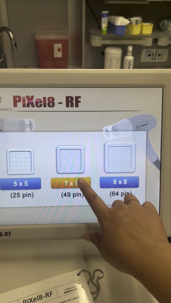 The PiXel8-RF system facilitates non-surgical skin tightening using bi-polar RF energy and minimally invasive microneedles to drive heat deep within the patient’s skin layers. The heat stimulates and remodels collagen and prompts the elastin cells to regenerate. The treatment requires little to no downtime and results in a skin surface that is firmer, smoother, and more even.